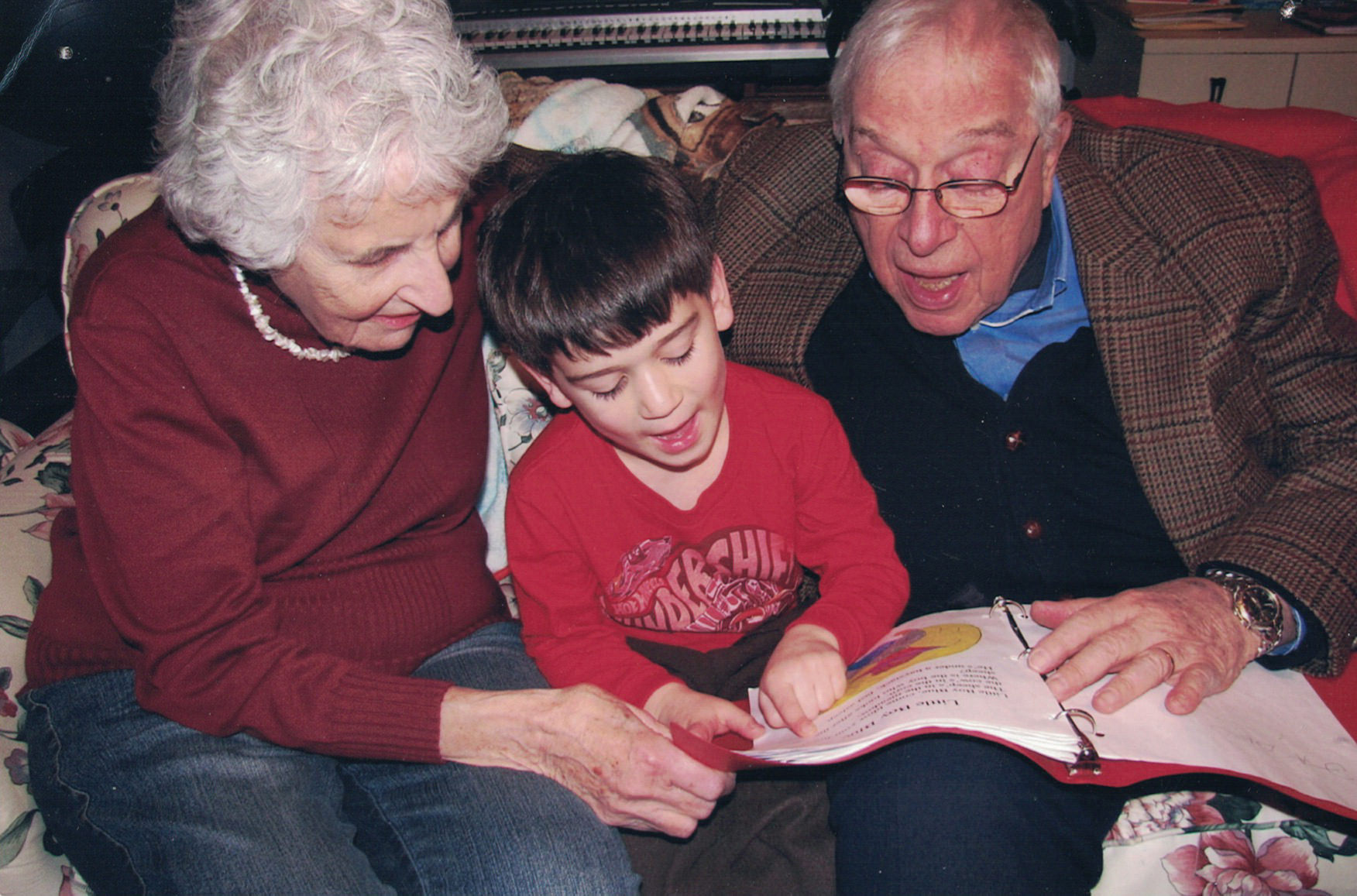 Joan, grandson Jared and Joe Birman reading together (2008).