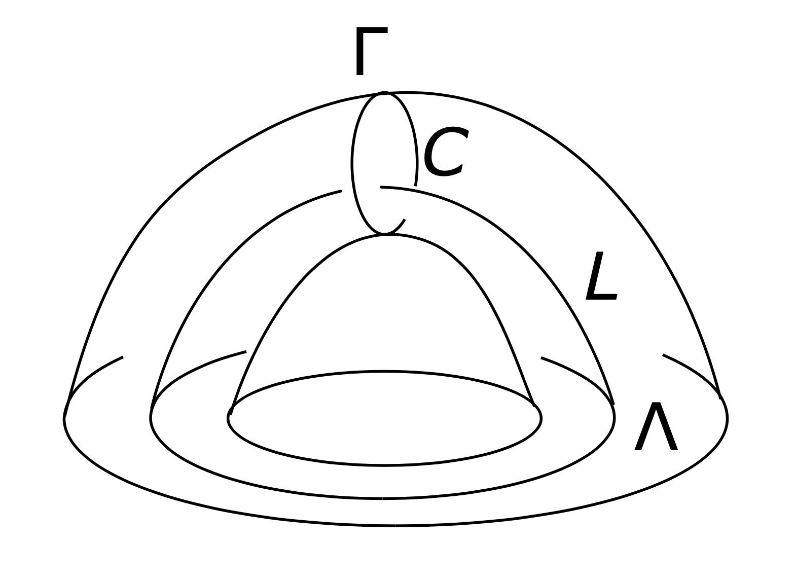 We next want to model this complex before surgery. The counterpart of Lemma 3.1 says that Reeb orbits after surgery are in natural 1-1 correspondence with Reeb orbits before surgery and cyclic words of Reeb chords of the attaching spheres; see ([e4], Section 5). In order to model this situation we use a two-copy \( L_0\cup L_{1} \) of the descending manifold. Here \( L_{0}\cap L_{1}=\{z\} \) is one point near the middle of the handle, and Reeb chords of the boundary of \( \Lambda_0\cup\Lambda_1 \) consist of two copies of Reeb chords of \( \Lambda \) and two additional Reeb chords \( x \) and \( y \) for each component of \( \Lambda \) corresponding to the maximum and a minimum of a Morse function making the Reeb shift generic.