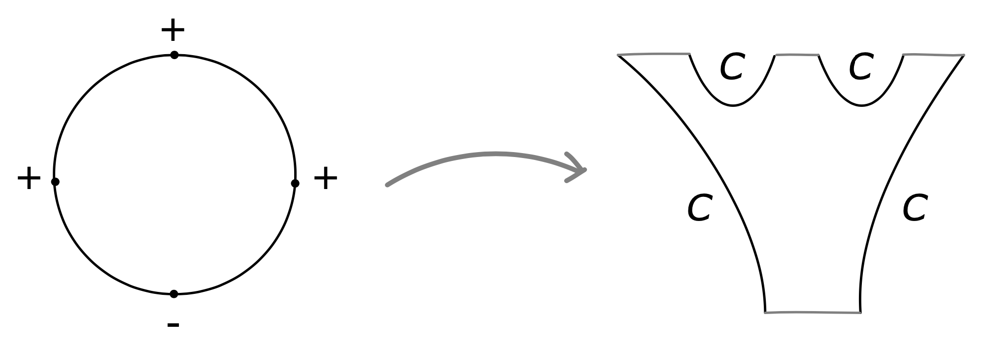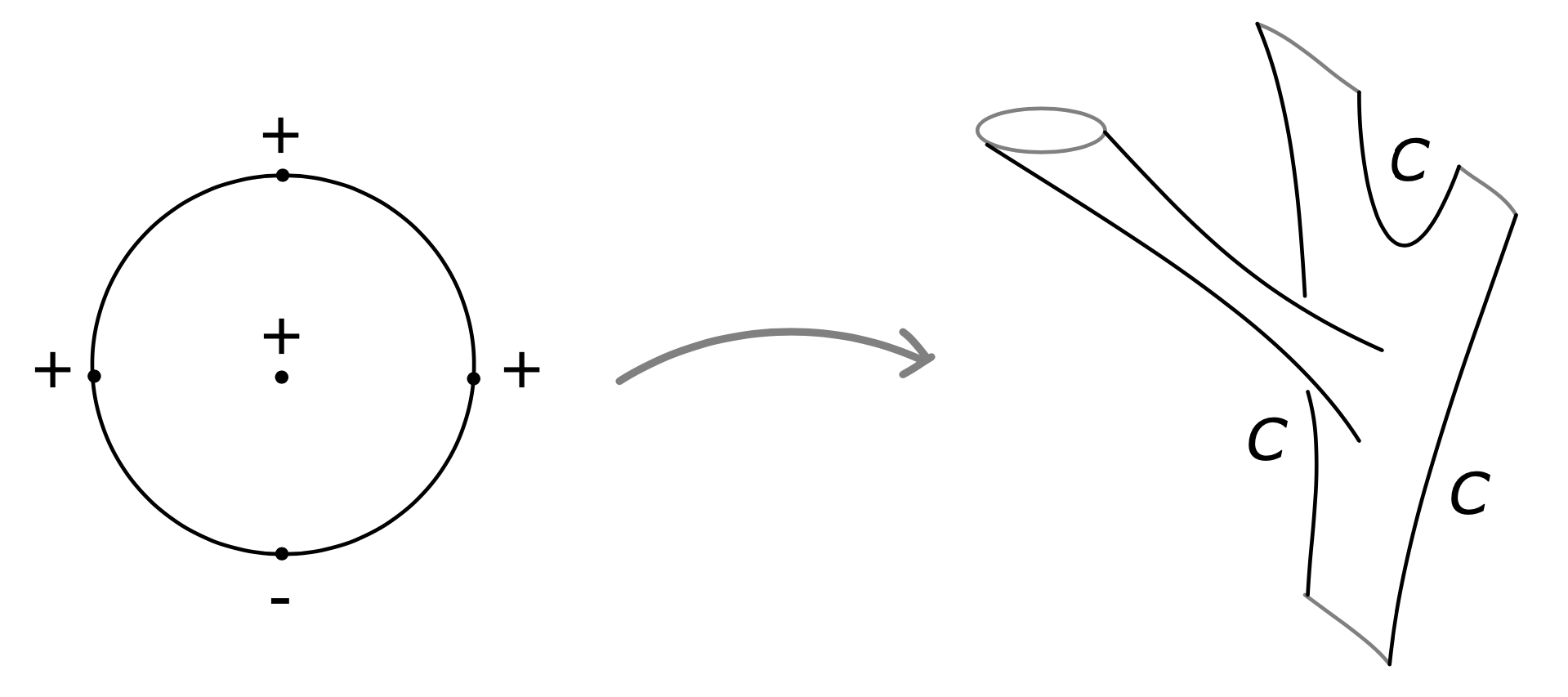 Then the \( \mu_{k} \)-operation counts disks with positive punctures connecting copies in increasing order and one negative output puncture; see Figure 2.