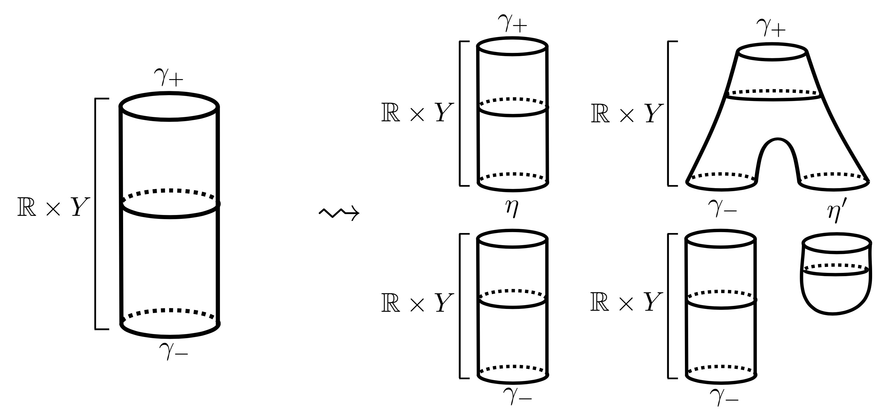 \( +\infty \); - similarly, for \( j = 1,\dots,s_- \), \( u \) is negatively asymptotic at the \( j \)-th negative puncture to the Reeb orbit \( \gamma_i^- \) in \( Y_- \).