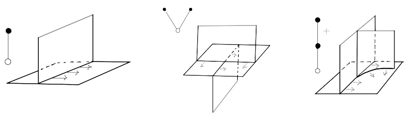 Similarly, it is straightforward to start with a smooth map between surfaces \( f:M \to N \), \( p \in M \) a \( \Sigma^{10} \) fold point, and modify \( f \) so that a pair of \( \Sigma^{110} \) pleats are born along the curve \( \Sigma^{10} \) near the point \( p \). The characteristic vectors will point in opposite directions. This process also results in a simultaneous Morse surgery of the \( \Sigma^{110} \) and \( \Sigma^{10} \) loci and is also an example of direct surgery of singularities.