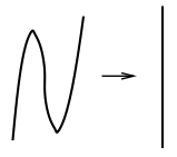 Let us illustrate the idea on the above concrete example. Again, we have \( f:M \to N \), a smooth map between surfaces, and there are two \( \Sigma^{110} \) pleats on a \( \Sigma^1 \) curve with an arc \( A\subset \Sigma^1 \) of \( \Sigma^{10} \) folds between them and such that the characteristic vectors at the two pleats point in opposite directions. What one may in fact do in this situation is create (by a direct surgery) another pair of \( \Sigma^{110} \) pleats, with characteristic vectors also pointing in opposite directions, on the same \( \Sigma^{1} \) curve but just outside of \( A \). One then cancels the four \( \Sigma^{110} \) pleats against each other, using the other type of direct surgery described in the previous subsection. Note that in this cancellation one matches the two pairs of pleats with each other in a way that intermingles the two original pairs. This whole process all happens in a neighborhood \( U \) of \( A \) and the end result is a map \( g:M \to N \), homotopic to \( f \) rel. \( M \setminus U \), which has \( \Sigma^{10} \) folds on a curve \( A^{\prime} \) in \( U \) which is isotopic to \( A \) by an isotopy compactly supported in \( U \). In particular the topology of the \( \Sigma^1 \) singular locus hasn’t changed, though the two \( \Sigma^{10} \) pleats have been removed. This concludes the process of geometrically realizing the inverse surgery of singularities in this particular case.