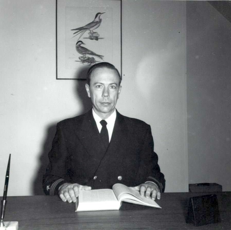Andy in his study in Cambridge. He is wearing his reserve officer’s uniform in this photo, taken by his wife, Jean, just prior to his retirement from the Navy.