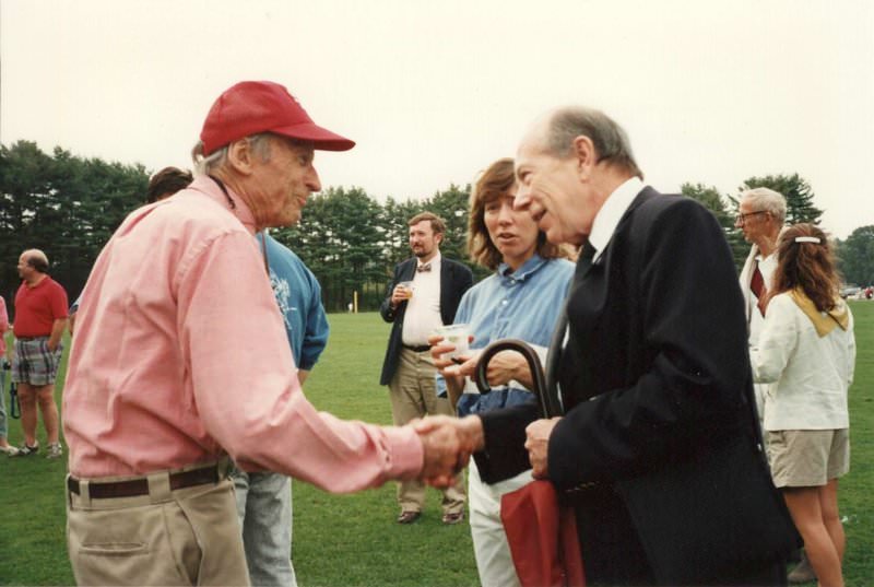 Andy Gleason (right) with Crocker Snow (left, in red hat) with Pam Gleason (at Andy's right) at the Myopia Polo Club (where Pam was an active player at the time) in Hamilton, Massachusetts. Snow was an aviation pioneer; Pam edited his memoir Log Book: A Pilot's Life (Brassey's, 1997).