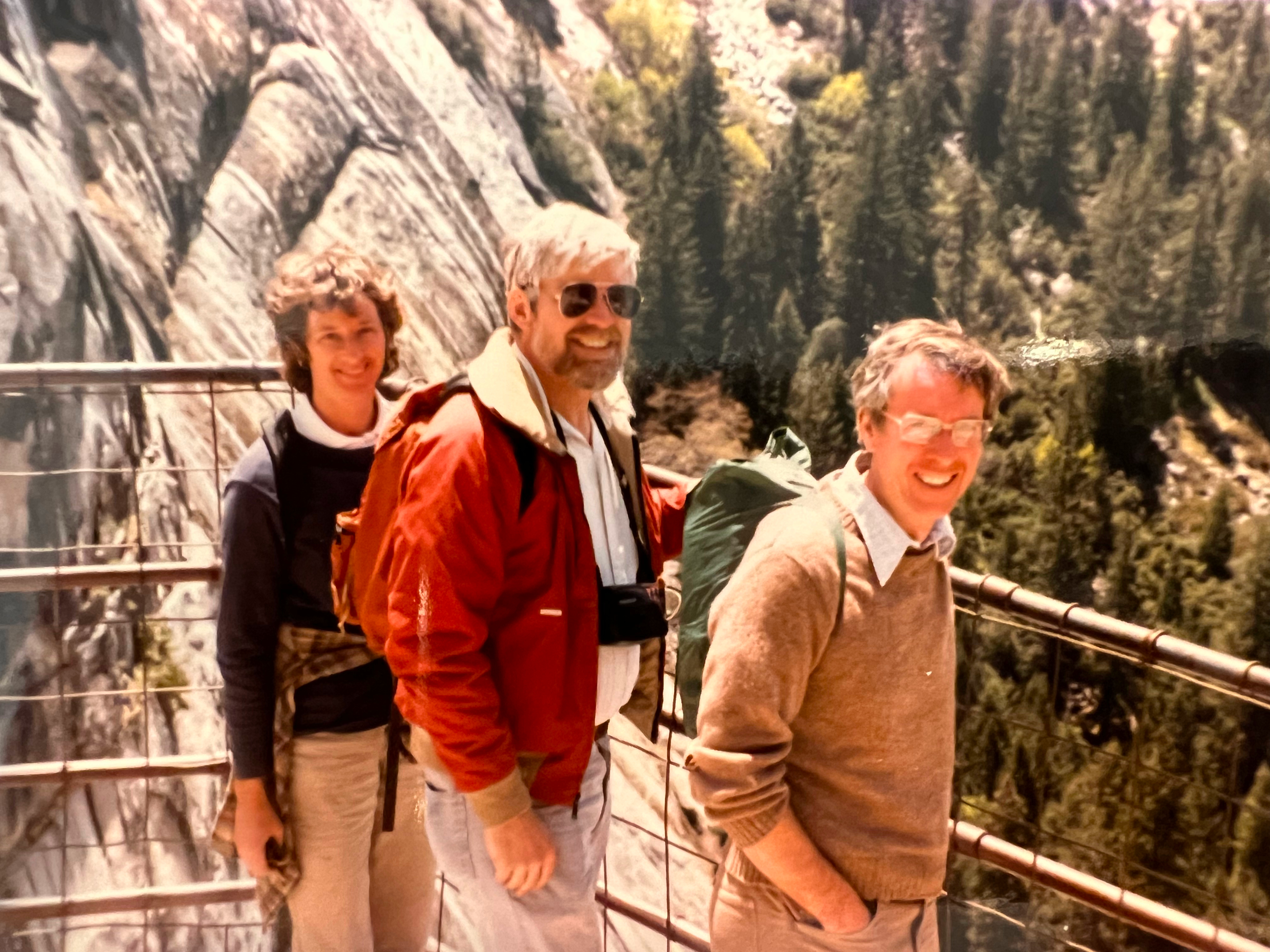 Cameron (at right with green knapsack) in Yosemite with Bob and Judy Edwards (1970s).