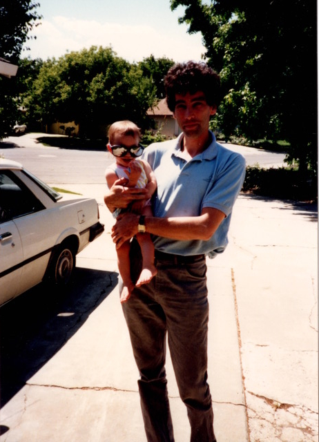 Joel with daughter Elizabeth in the driveway of their new house in sunny Davis California, 1988.