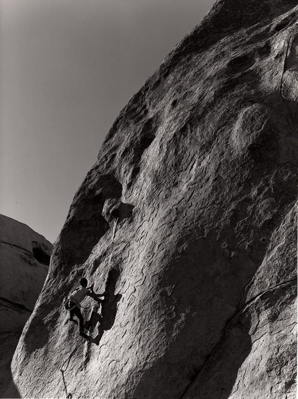 Dennis climbing at Tahquitz Rock (or possibly Suicide Rock) in the San Jacinto range.