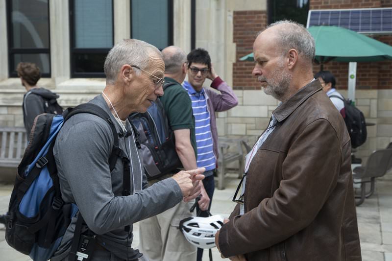 Michael Freedman and Vaughan Jones at Vanderbilt University during the 2019 "Noncommutative Geometry and Operator Algebras (NCGOA)" conference. Freedman delivered the Shanks Lecture that year.