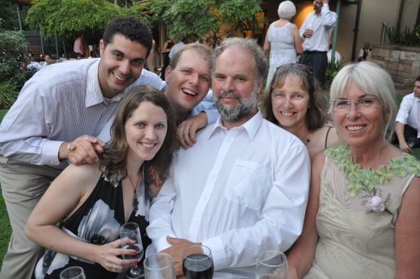 A family occasion in 2010: Arash Ghassemi (Bethany's husband), Bethany (daughter), Ian (son), Vaughan, Wendy and Tessa (sister).