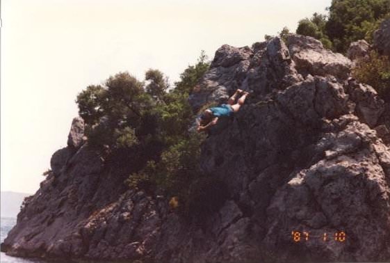 Rob Kirby diving off rocks above the Bay of Gökova (Turkey) in about 1996.