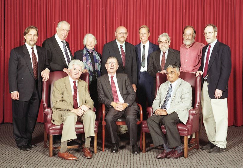 Cathleen Morawetz and members of the Courant Institute of Mathematical Sciences with NYU President L. Jay Oliva (center front).