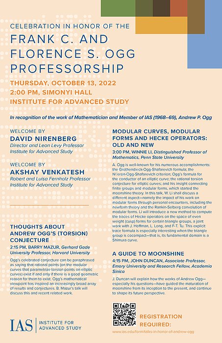 Poster announcing the Celebration In Honor of the Frank C. and Florence S. Ogg Professorship, held at the Institute for Advanced Study in October 2022.