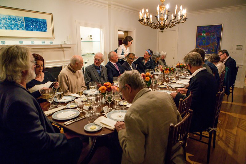 Andrew Ogg (far side of the table, grey suit) in Princeton, New Jersey, during the Celebration In Honor of the Frank C. and Florence S. Ogg Professorship at the Institute for Advanced Study (October, 2022). Proceeding clockwise around the the table: Helmut Hofer (head of table at photo left), Lisa Brown, Pierre Deligne, Andy Ogg, Stephen Ackley-Ortiz, Ashkay Venkatesh, Lorenza de Lellis (standing), Helen Nissenbaum, Winnie Li, Sonja Hofer, Camillo de Lellis (not visible), Michael Magada, Taffy Griffiths, John Duncan, Jacob Lurie, Peter Sarnak, and Phillip Griffiths.