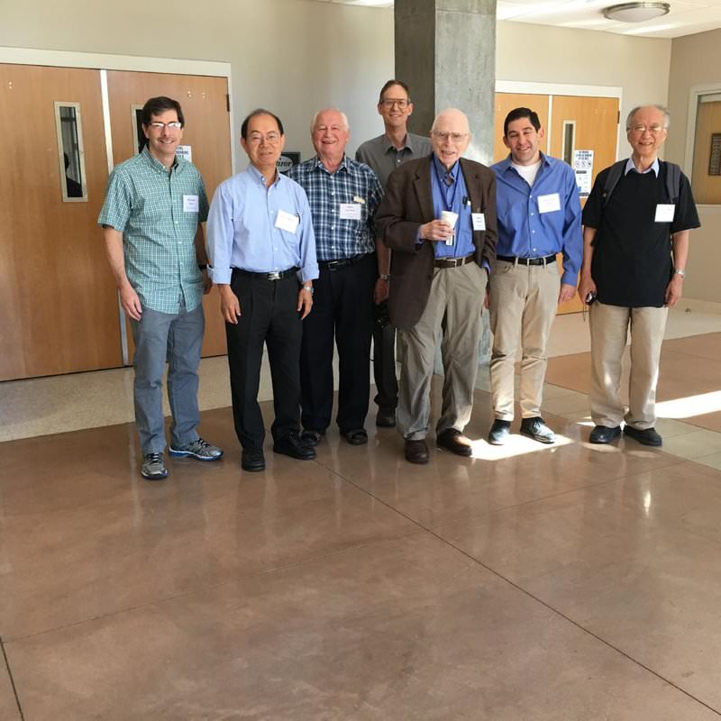 Left to right: Richard Davis, Keh-Shin Lii, John Van Ness, Richard Bradley, Murray Rosenblatt, Anthony Gamst, and Tze-Chien Sun at a conference honoring Rosenblatt at UC San Diego, October 2016.