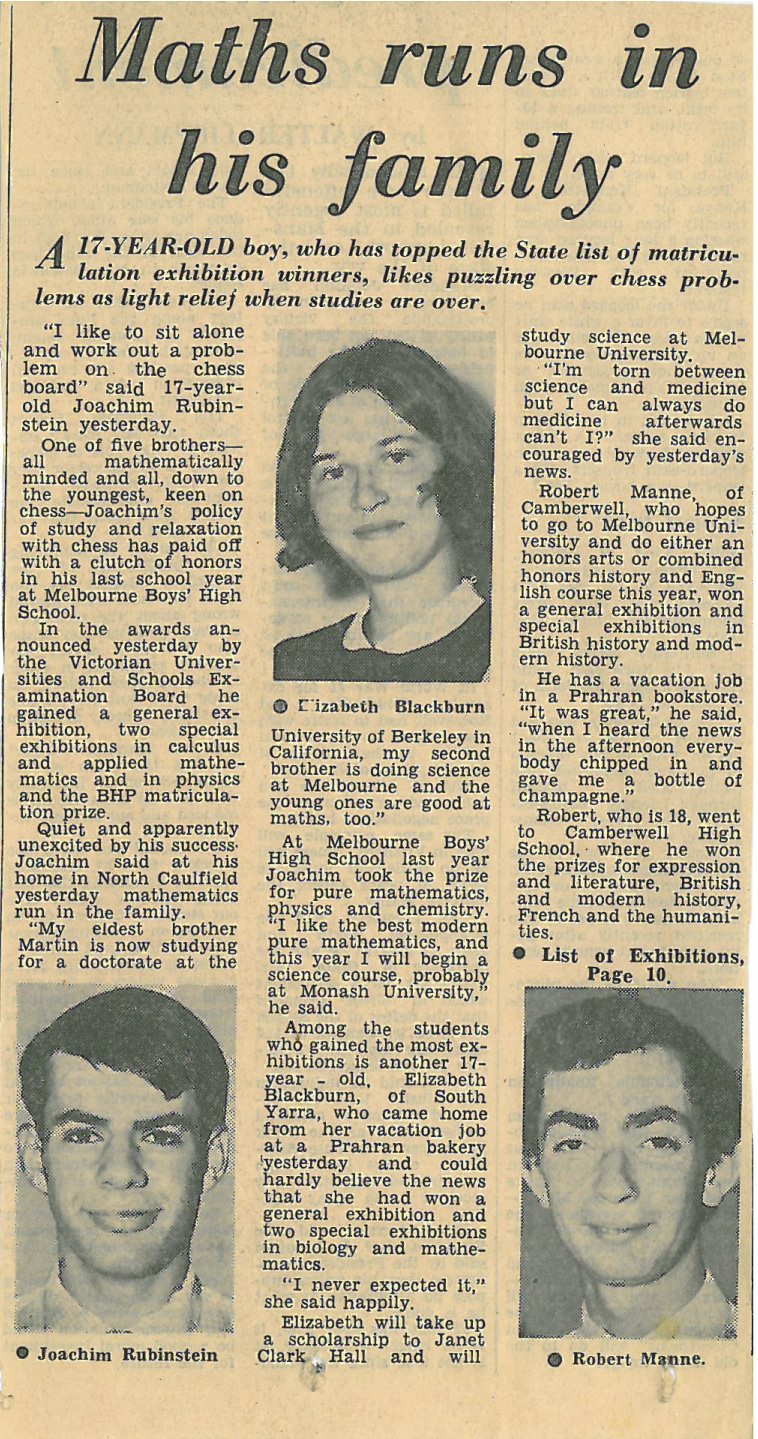 A local paper writes about Hyam's high-school honors—and his family's proclivity for mathematics.