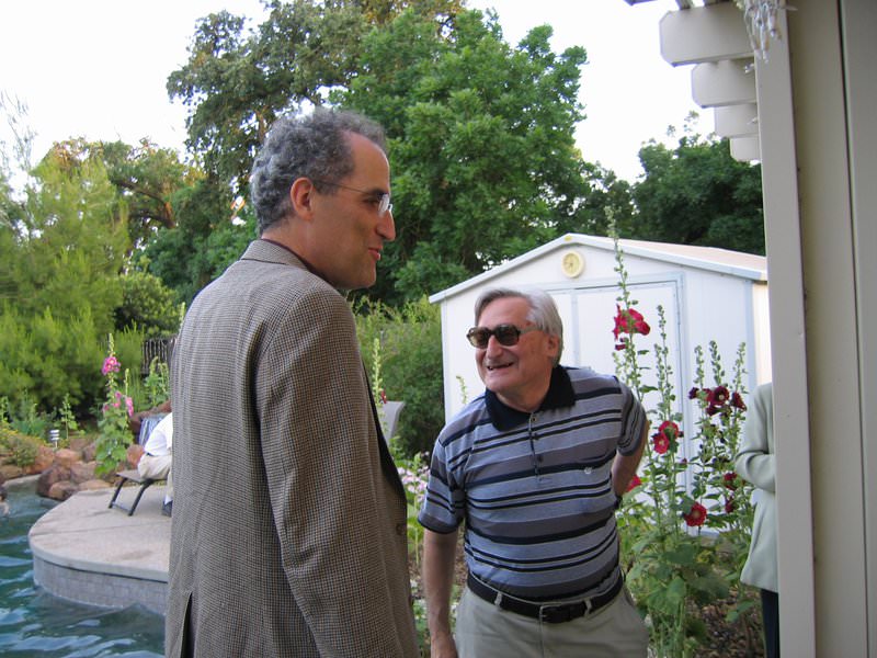 Albert with Edward Witten (at left) at the reception for Albert's 70th birthday conference.