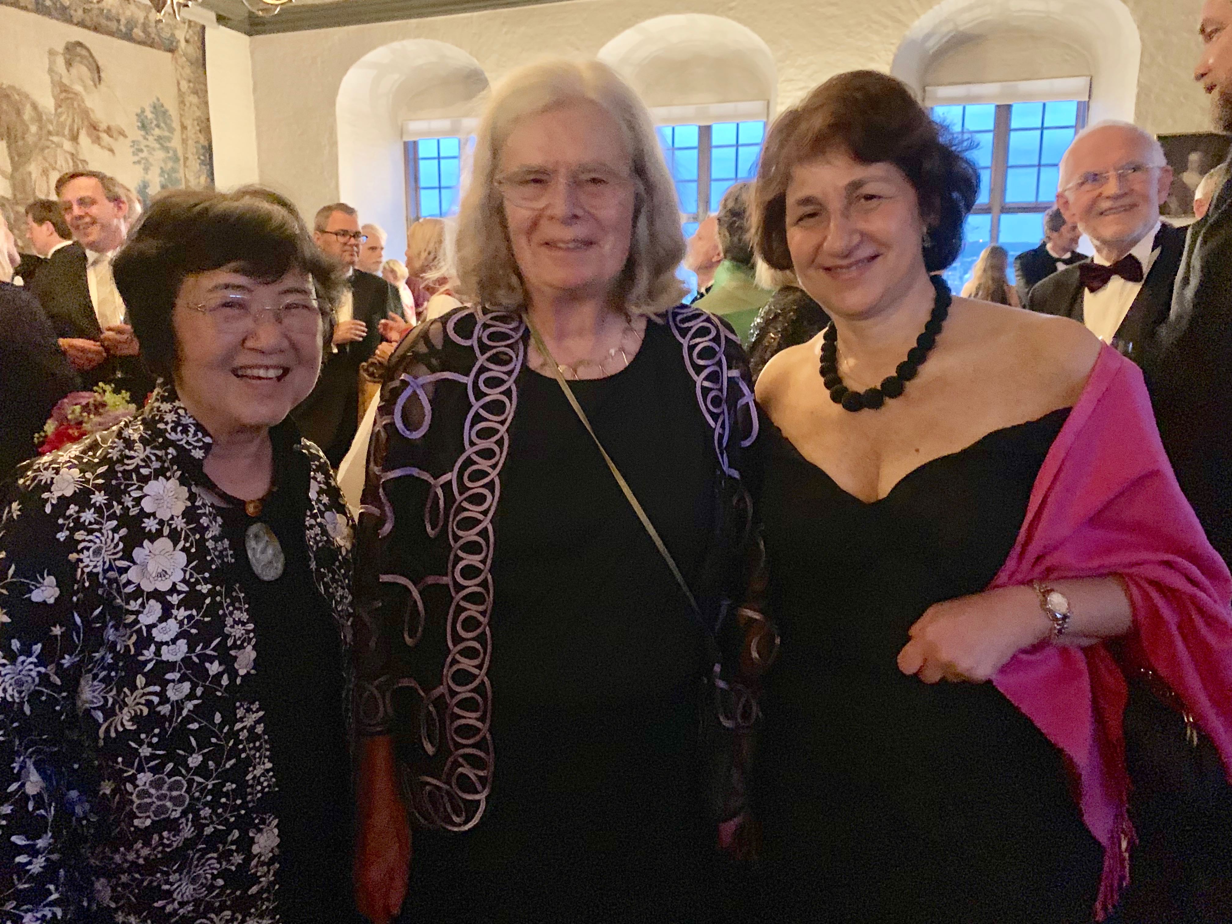 A reception in honor of Karen Uhlenbeck (center) on the occasion of the 2019 Abel Prize ceremony. At left is Chuu-Lian Terng and on the right is ?.
